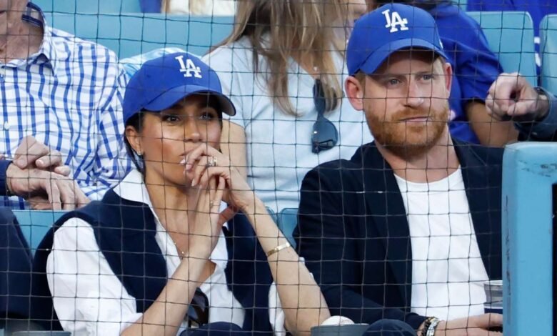 Meghan Markle usou não apenas um boné de beisebol do Los Angeles Dodgers, mas também as cores azul e branco do time quando compareceu ao jogo 4 da World Series com o marido, o príncipe Harry, em 28 de outubro.