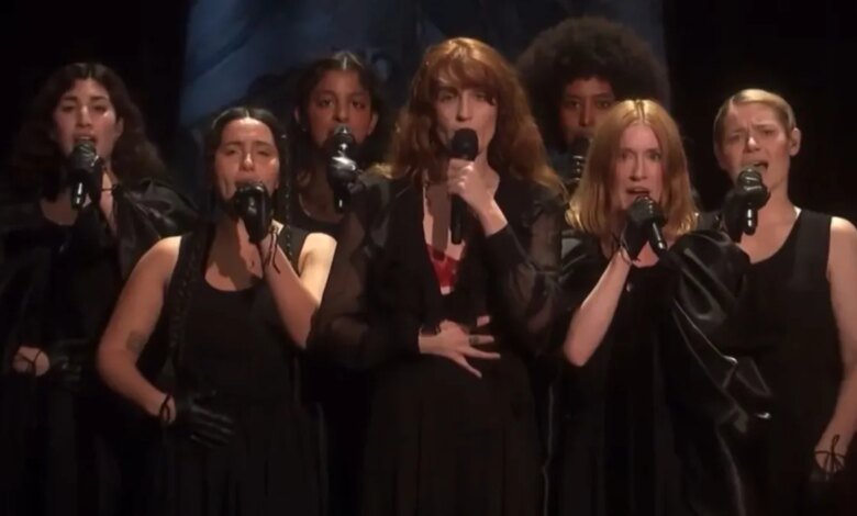 Welch cantou “Todo mundo grita” Com intensidade furiosa, apoiado por uma trupe de dança sincronizada. Seus gritos diretos são acentuados por uma seção rítmica compacta e um piano dinâmico. Assista a um replay abaixo.