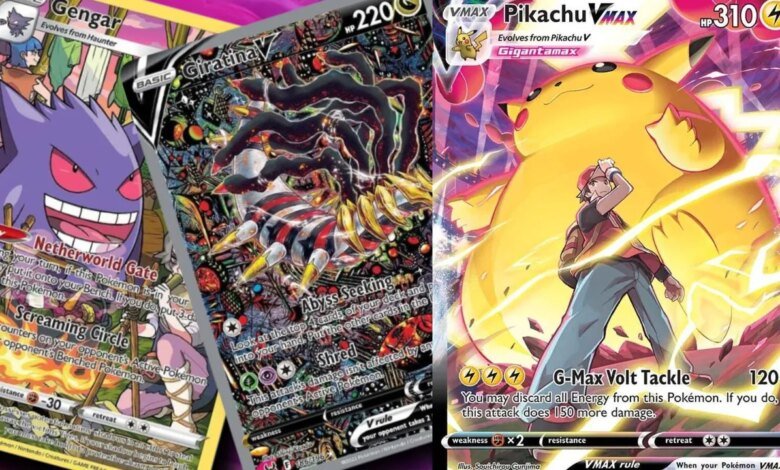 Pikachu VMAX TG17/TG30 Pegando esta Noskalia, Pikachu acelera na era Espada e Escudo do Pokémon com forma Gigantamax. A pose de Red é incrível, pronto para outro desafio com Pikachu feliz em pé. Este cartão custava US$ 10-20 a mais que o Pikachu V, mas fica na mesma estimativa em US$ 96.