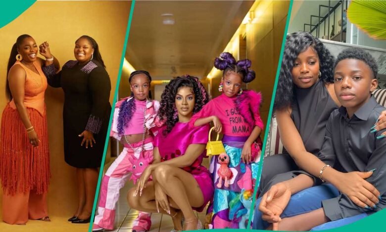 As estrelas Venida Akbofure, Pisola Ayela, Isabella e Bibinayja eram mães solteiras. Crédito da foto@bislaaiyaola/@veezeebayhey/@isabelle