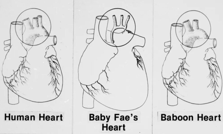 Em 26 de outubro de 1984, “Baby Fae” era um recém-nascido com um grave defeito cardíaco. Um coração de babuíno foi recebido em um transplante experimental em Loma Linda. Califórnia (ela viveu 21 dias com coração de animal)