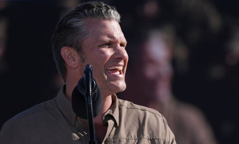 O secretário de Defesa Pete Hegseth fala durante um evento que comemora o próximo 250º aniversário do Corpo de Fuzileiros Navais no sábado, 18 de outubro de 2025, na Base do Corpo de Fuzileiros Navais Camp Pendleton em Camp Pendleton, Califórnia. (Foto AP)