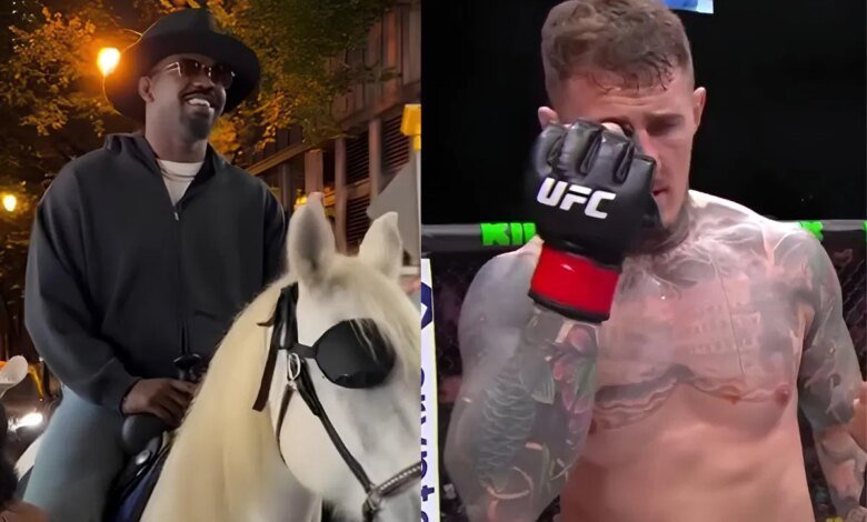 Jon Jones Saiba como criar uma entrada, mas desta vez não dentro do octógono. O ex-campeão peso pesado do UFC decidiu roubar os holofotes na pesagem do DBX4 (Dirty Boxing Championship) em Nashville, Tennessee. Jones montou um cavalo com tapa-olho, sorrindo enquanto cumprimentava a multidão e fazia alguns truques. Tom Aspinall Da maneira mais estranha possível.