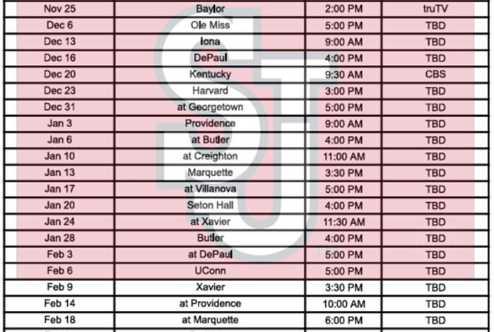 Imprima a programação do basquete do St. John’s 2025-26; Formato PDF de transmissão de televisão