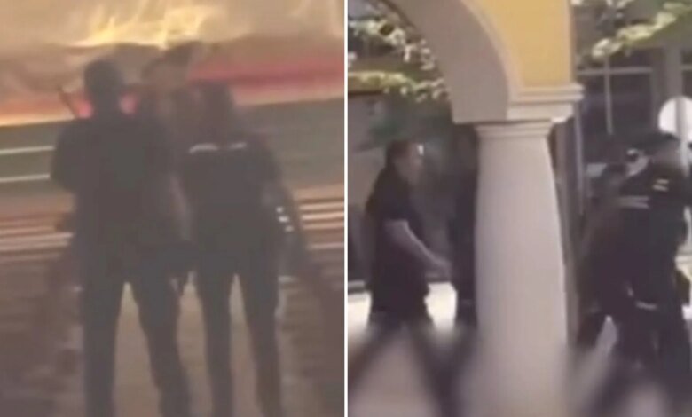 Os policiais então chegaram e o dominaram com uma arma de choque antes que ele pudesse ser preso.