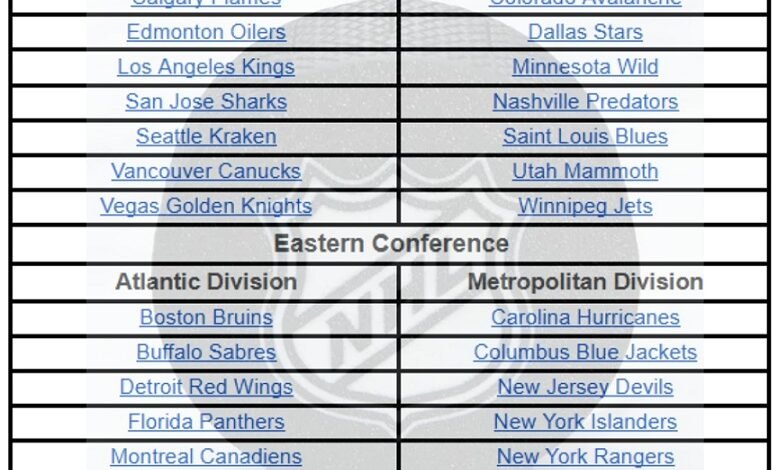 Lista de times da NHL pós-2025 por divisão; PDF para impressão apareceu primeiro em Sports Brackets.
