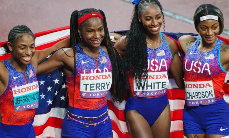 A equipe feminina dos EUA de 4x100m enfrentou quantidades iguais de estresse e caos no Campeonato Mundial de 2025 em Tóquio, mas antes que Sha’Carri Richardson pudesse iniciar sua corrida de âncora, Kayla White ajudou a manter seu equilíbrio. quando White chegou ao seu pit stop para entregar o bastão. Ela foi pega ajustando o bastão para que Richardson pudesse segurá-lo bem. Isso evita a chance de o bastão cair. Este foi um dos principais motivos pelos quais a seleção americana ultrapassou a seleção jamaicana. E agora é hora dos Gunners gritarem merecidamente em nome de White.