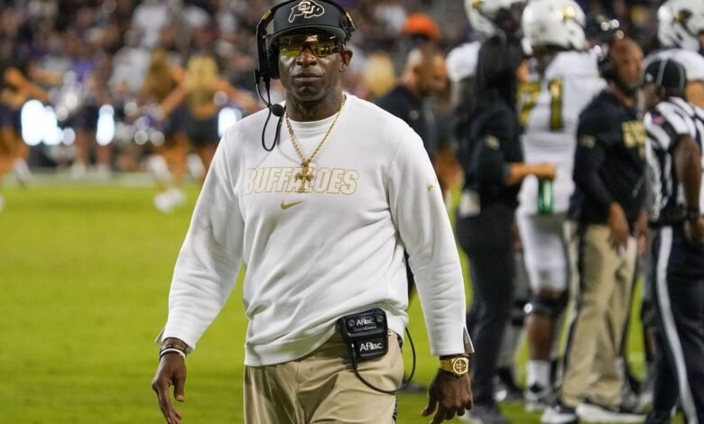 O técnico do Colorado, Deion Sanders, retorna aos treinos após a cirurgia.