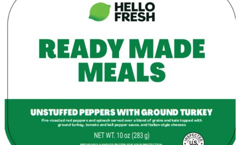 Este produto inclui 10,1 onças de recipientes de Hello Fresh Meed Mead Mead Mealled Pepper Pasper Pasta e as 10 onças de Hello Fresh Meds Meals Peppers, que não são feitas com um peru esmagado. Ambos foram enviados diretamente aos consumidores.