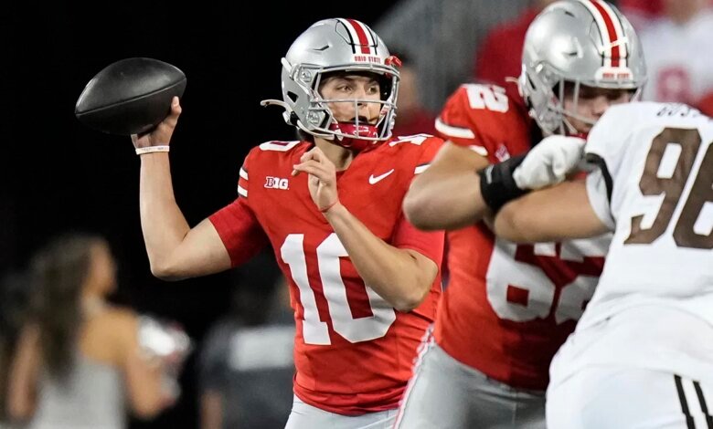 E esta semana ele está prestes a enfrentar o número 1 do estado de Ohio em um confronto que pode enviar seu QBR às alturas ou enterrá-lo sob o pass rush dos Buckeyes.