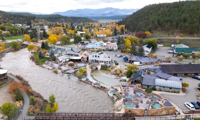 O outono marca o início da “temporada de banhos” anual em Pagosa Springs. Como resultado, o turismo aumentou. e ajudar a sustentar a economia no sudoeste do Colorado. Mas as inundações históricas desta semana causaram o fechamento de rodovias e pontes, ameaçando a infraestrutura e causando milhões de dólares em danos a algumas casas e empresas no centro da cidade.