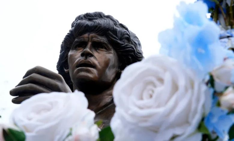A estátua de Maradona, que morreu de ataque cardíaco em 2020, completaria 65 anos nesta quinta-feira. Retirado do Museu Maradona para um passeio de um dia pela cidade.