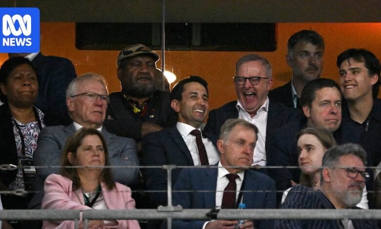 Anthony Albanese sentou-se ao lado de Peter V’landy durante o Jogo 1 do State of Origin deste ano. (AAP: Darren Inglaterra)