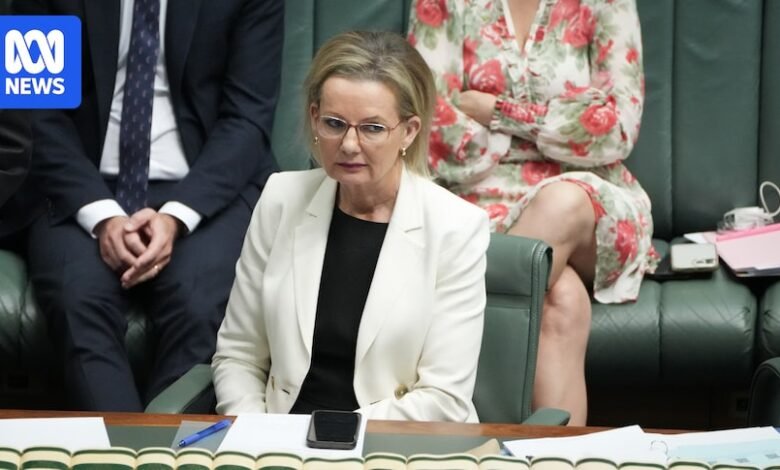 A líder da oposição, Sussan Ley, intensificou as críticas depois de ser parada por repórteres enquanto tentava sair de um discurso. (ABC Notícias: Matt Roberts)