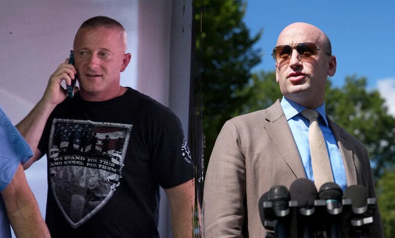 O candidato democrata ao Congresso da Carolina do Norte, Richard Ojeda (à esquerda), está sob ataque por comentários anteriores sobre como ele estaria disposto a ir para a prisão se tivesse a oportunidade de “despedir o traseiro” do principal assessor de Trump, Stephen Miller. (Kevin Dietsch/Getty Images; Sarah Silbiger/CQ Roll Call)
