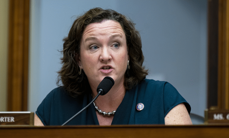 Katie Porter, uma democrata da Califórnia, enfrentou duras críticas tanto de republicanos quanto de democratas por seu desempenho na entrevista. (Fotógrafo: Al Drago/Bloomberg via Getty Images)