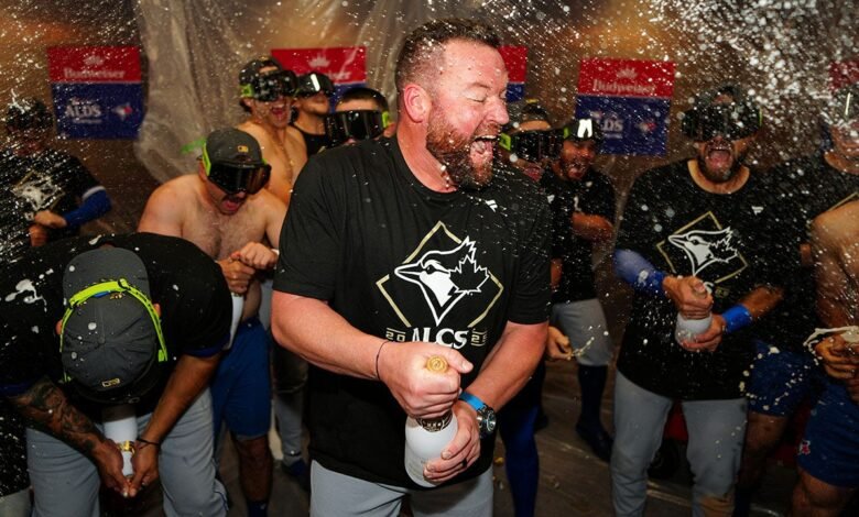 Os Blue Jays coroaram uma vitória impressionante do ALDS com uma vitória por 5-2 no jogo 4 na noite de quarta-feira, e a celebração do champanhe na sede do clube seria divertida. Mas antes do início da comemoração, o técnico do Blue Jays, John Schneider, dirigiu algumas palavras ao seu time.