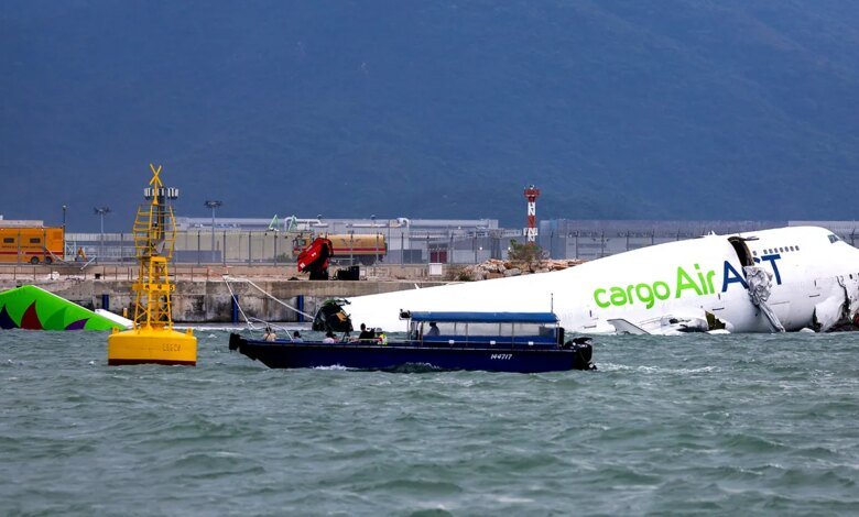 Duas pessoas morreram depois que um avião de carga derrapou na pista em Hong Kong