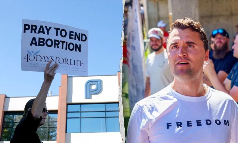 A organização pró-vida 40 Days for Life viu um aumento no interesse após o assassinato do fundador e CEO da Turning Point USA, Charlie Kirk. (The San Francisco Chronicle via Paul Chinn/Getty Images; Trent Nelson/The Salt Lake Tribune/Getty Images)