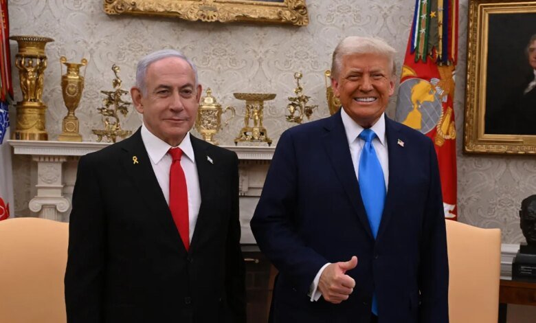 O presidente Donald Trump recebeu o primeiro-ministro israelense Benjamin Netanyahu na Casa Branca em Washington, DC, em 4 de fevereiro de 2025. (Avi Ohayon (GPO) /Bildiri/Anadolu, via Getty Images)