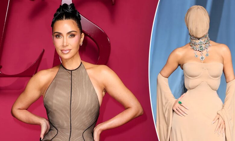 O vestido que cobre o rosto de Kim Kardashian provocou reações mistas na estreia