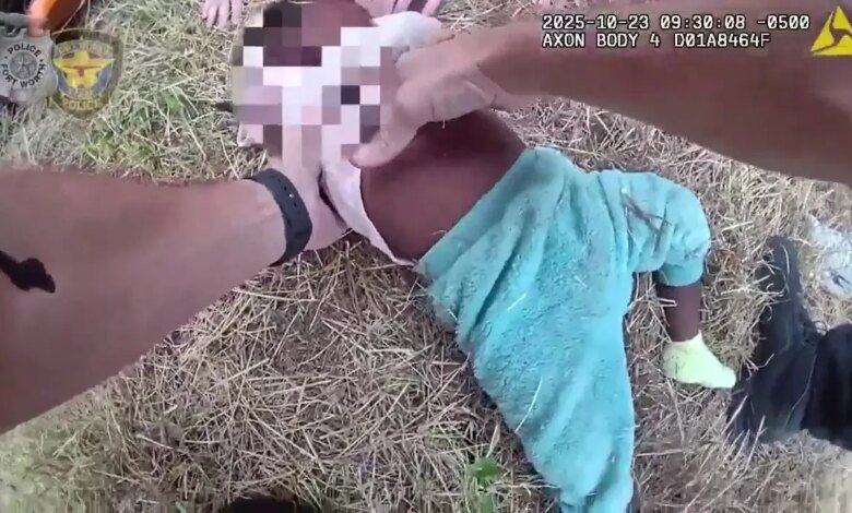 Policiais em Fort Worth, Texas, estão sendo aclamados como heróis depois que um vídeo da câmera corporal os mostrou e vários Bons Samaritanos levantando um carro capotado para salvar um bebê preso embaixo dele após um acidente na Interestadual 30 na semana passada.