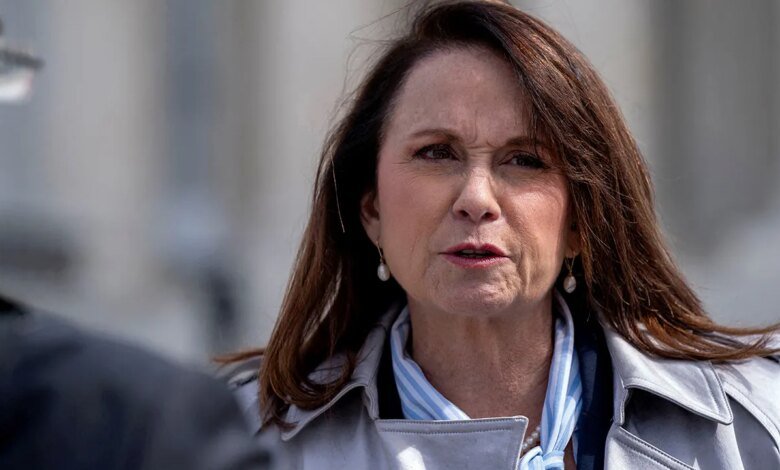 A procuradora-geral da Louisiana, Liz Murrill, deixa a Suprema Corte dos EUA depois que os juízes ouviram argumentos em um caso sobre censura nas redes sociais em 18 de março de 2024, em Washington. (REUTERS/Bonnie Cash)