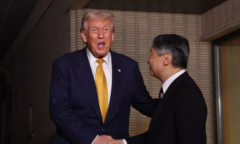 O presidente Donald Trump pousou no Japão na segunda-feira, onde se reunirá com o novo primeiro-ministro Sanae Takaichi para uma reunião inaugural.