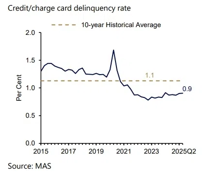 O MAS disse que, no caso dos empréstimos com cartão de crédito, o saldo de renovação relativo ao rendimento pessoal disponível aumentou ligeiramente até 2,5% no segundo trimestre de 2025 e continuou a aumentar após 2022.