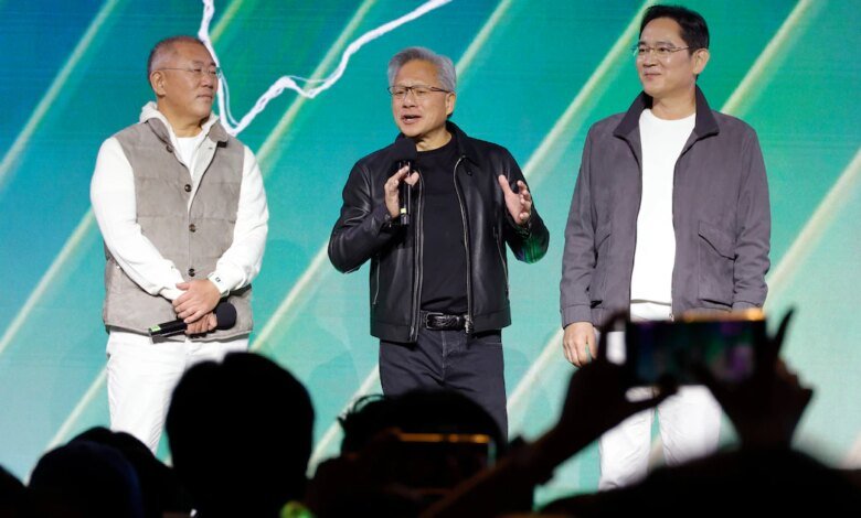 O CEO da NVIDIA, Jensen Hwang, jantou com o presidente da Samsung Electronics, Lee Jae-yong, e o presidente do Hyundai Motor Group, Chung Eui-sun. Centenas de pessoas compareceram ao restaurante e para alguns foi uma noite auspiciosa.