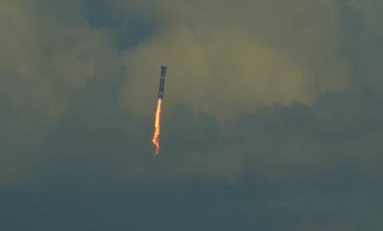 Starshamp – O maior e mais poderoso foguete construído até agora – tempestades desde a parte sul do Texas até o céu noturno. O impulsionador entrou em uma entrada controlada no Golfo do México, saindo do Oceano Índico, antes de sair do Oceano Índico. Nada foi recuperado.