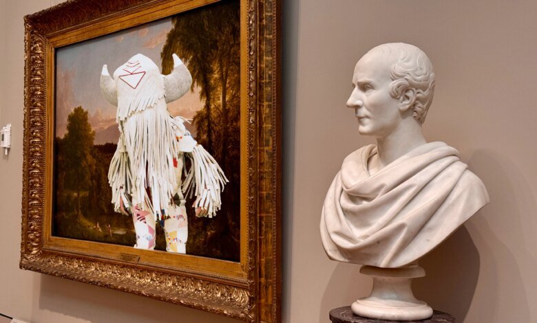 Ao digitalizar um código QR, os visitantes iniciam um passeio autodirigido que revela outro tipo de história – uma camada, bem como as imagens históricas tihassicas e os detalhes descritos nas esculturas. Estas interferências indígenas com imagens euroceântricas e coexistiram romanticamente com paisagens ideológicas, reconhecendo e celebrando duas raízes distintas da linhagem americana. Codificado Acessível através do site do amplificador O interior das Galerias Met e de qualquer lugar do mundo entre 31 de dezembro de 2025.