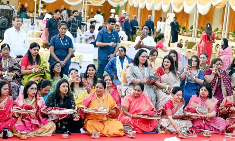 A Ministra-Chefe de Gupta celebrou Karwa Chauth nos Serviços Sadan, que esteve presente no evento por muitas mulheres políticas, ministras centrais, deputados, MLAs, vereadores, funcionários do governo e outras mulheres proeminentes.