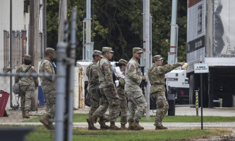 Membros da Guarda Nacional do Texas chegaram à instalação de treinamento militar da área de Chicago