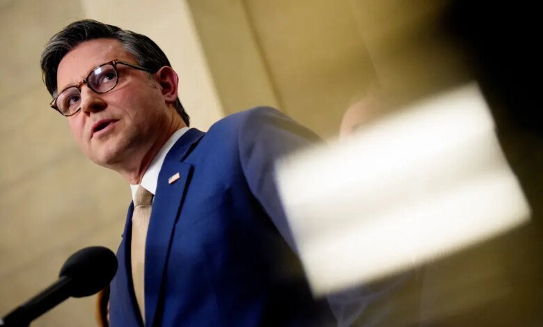 O presidente do Parlamento Republicano, Mike Johnson, rasga a escolha do coelho ruim como o piso do teto do show do Super Bowl da NFL e propondo um “modelo” como Lee Greenwood.