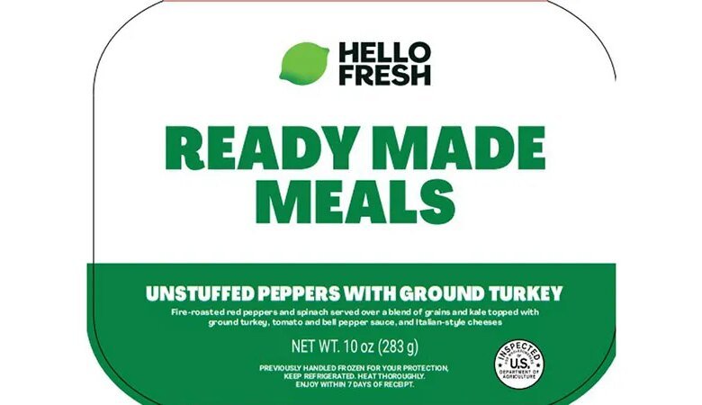 Os produtos têm recipientes de 10,1 onças de Hello Fresh Ready Feed of Fresh Ready, Pasta Chili de porco e alimentos de contêineres de 10 onças feitos de alimentos frescos prontos com peru moído com peru moído. Ambos foram transmitidos diretamente aos clientes.