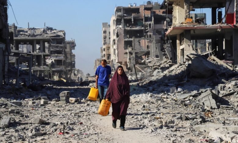Os palestinos retornaram às ruínas onde antes ficavam as casas que aguardavam os reféns israelenses