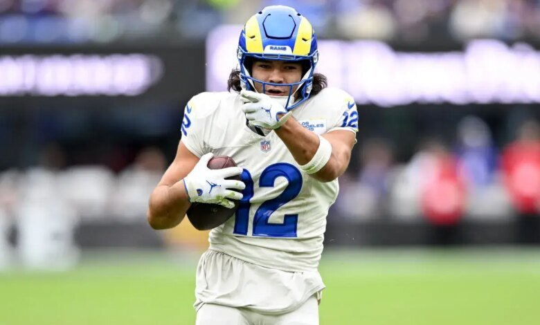 O ala do Los Angeles Rams, Puka Nacua, machucou o tornozelo esquerdo no segundo quarto da vitória de domingo por 17-3 sobre o Baltimore Ravens.