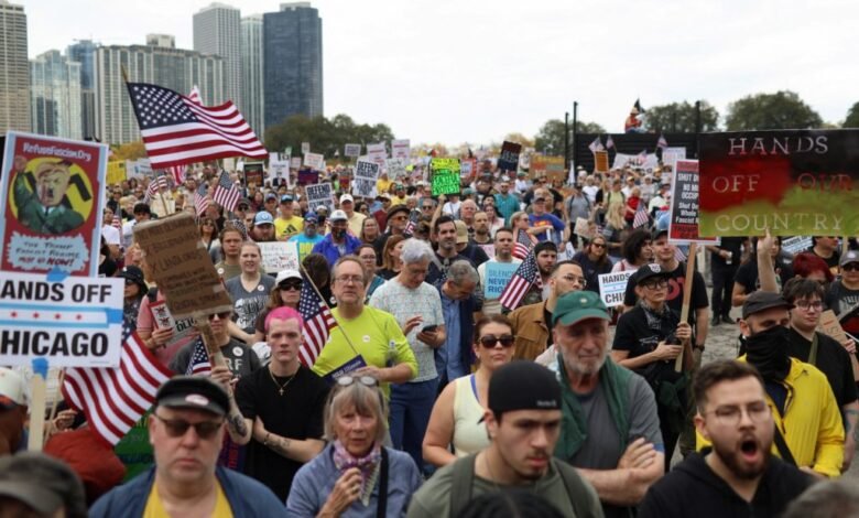 ‘Queremos proteger a nossa democracia’, dizem os organizadores do protesto ‘No King’