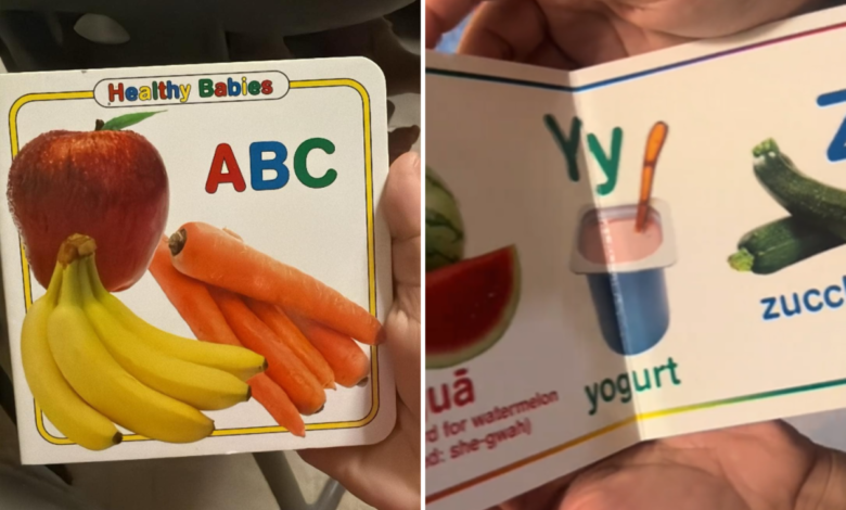 Uma mulher ficou chocada ao saber o que um livro do alfabeto escolheu para representar a letra X enquanto folheava os livros de seu sobrinho de 1 ano de idade.